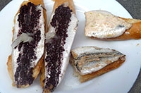 Las anchoas son las reinas de este local. Las preparan de un sinfín de maneras: con crema de centollo, con erizo de mar, con huevas de trucha, con foie y compota de manzana… Tratan con tanto mimo este producto, que preparan los pinchos al momento para que no se estropee. De hecho, es una barra muy atípica porque ¡no hay pinchos ya preparados sino maquetas!