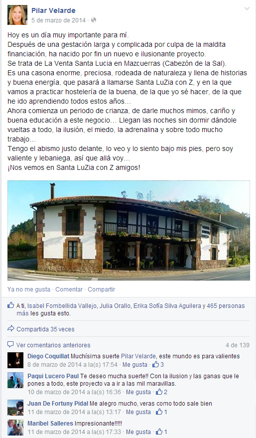Facebook: Nace Santa Luzía Repercusión que tuvo el anuncio del nacimiento de mi nuevo EspaZio Gastrómico. Cursos, Ponencias y +